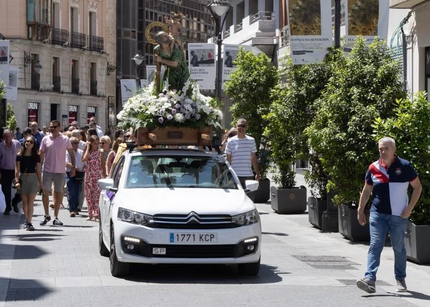Imagen de San Cristóbal sacada en procesión sobre el techo de un taxi, como se hacia en nuestra isla.
