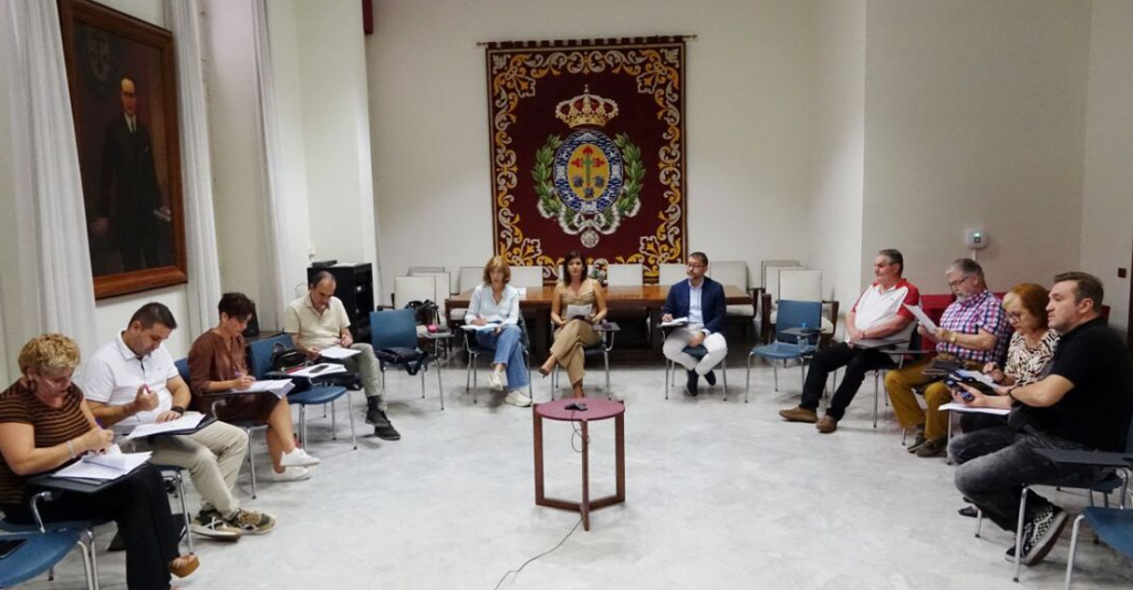 Imagen tomada en una de las reuniones de la “Mesa del Taxi”, con Evelyn Alonso, la concejal delegada de movilidad (c) y a su lado el alcalde José Manuel Bermúdez (d)