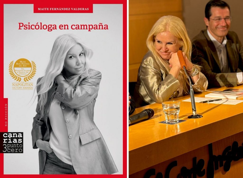 - Hace unos meses les anuncié en El Cotarro que estábamos de enhorabuena porque “una de las nuestras”, la psicóloga y “coach” Maite Fernández Valderas, acababa de lanzar un nuevo libro titulado “Psicóloga en campaña”, una obra que venía que ni pintada para convertirse en regalo de las navidades. Creo que así fue, aunque el libro no había sido presentado oficialmente. Ese momento de la “presentación en sociedad” tuvo lugar hace unos días en la sala “Ámbito Cultural” de El Corte Inglés (que se hizo pequeña ante el llenazo de público) tanto en Santa Cruz de Tenerife como en Las Palmas de Gran Canaria. Debo volver a reseñar que Maite Fernández Valderas (que, por cierto, es la esposa de nuestro buen amigo Alfredo Medina Moreno, director de Comunicación, Sostenibilidad y Relaciones Institucionales del Grupo El Corte Ingles en Canarias) es especialista en Psicología de Empresa y de las Organizaciones, Coach Personal, Ejecutivo y Político desde 2012, certificada por la Escuela Europea de Coaching y por la International Coach Federation, y ha sido premiada en Washington con un Napolitan Victory Awards al Mejor Blog Político del Año (2024) Fernández Valderas fundó y dirige actualmente la firma ETIK, Ha creado el programa “Creando Líderes Políticos” y ETIKVictory.