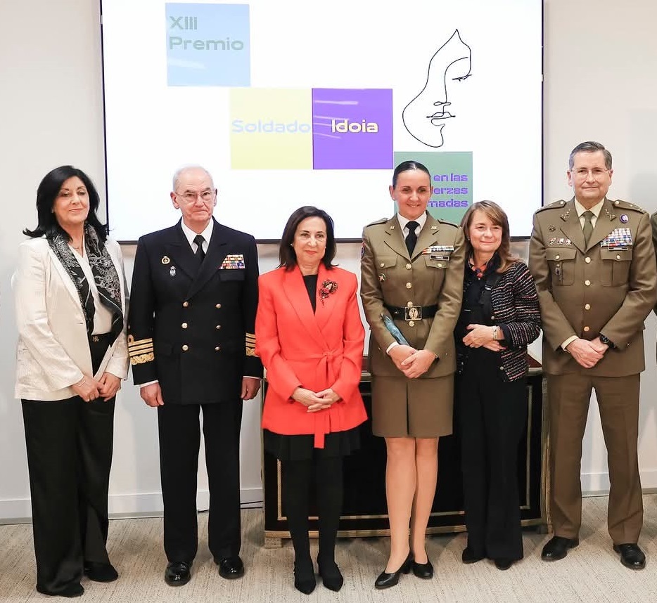 De Izda. a Dcha.: Esperanza Casteleiro Llamazares (directora del Centro Nacional de Inteligencia – CNI y ex secretaria de Estado de Defensa) Teodoro Esteban López Calderón (almirante general de la Armada – jefe del Estado Mayor de la Defensa – JEMAD) Margarita Robles Fernández (ministra de Defensa) Adelina Torres Díaz (cabo primero premiada) Adoración Mateos Tejada (subsecretaria de Defensa y presidenta del Observatorio Militar para la Igualdad) y Amador Enseñat y Berea* (general de ejército – jefe del Estado Mayor del Ejército de Tierra – JEME)